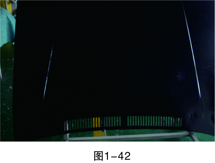 步驟1(定位):拆下發(fā)動機蓋罩固定螺栓,將拆下的發(fā)動機蓋罩移至修復工作臺,如圖1-42所示。