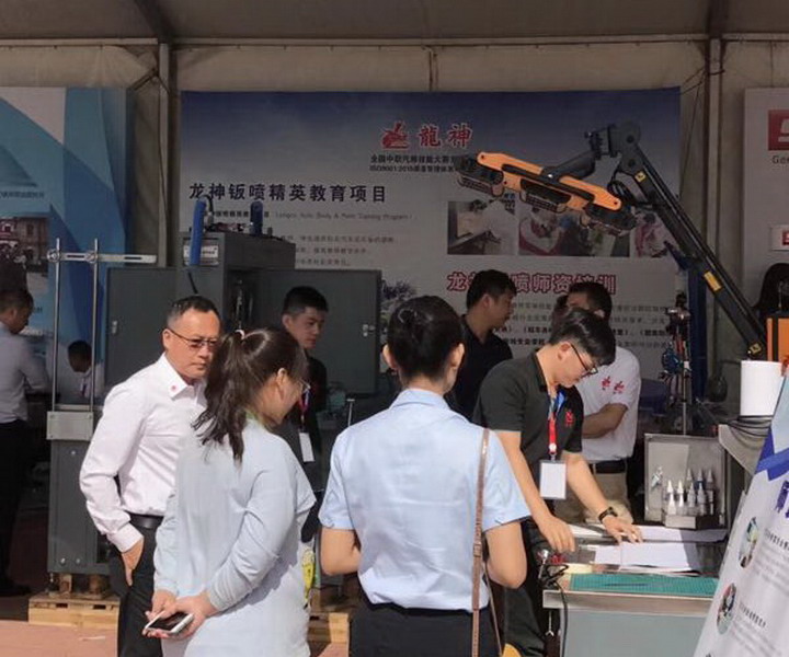 龍神公司一如既往助力"2018年全國職業(yè)院校中職汽修技能大賽";大賽使用龍神產(chǎn)品:調(diào)色燈箱、噴漆柜、油漆烘烤箱、除油劑噴壺(比利時(shí))、 噴涂架、切紙架、壓縮空氣系統(tǒng)等,為大賽保駕護(hù)航。