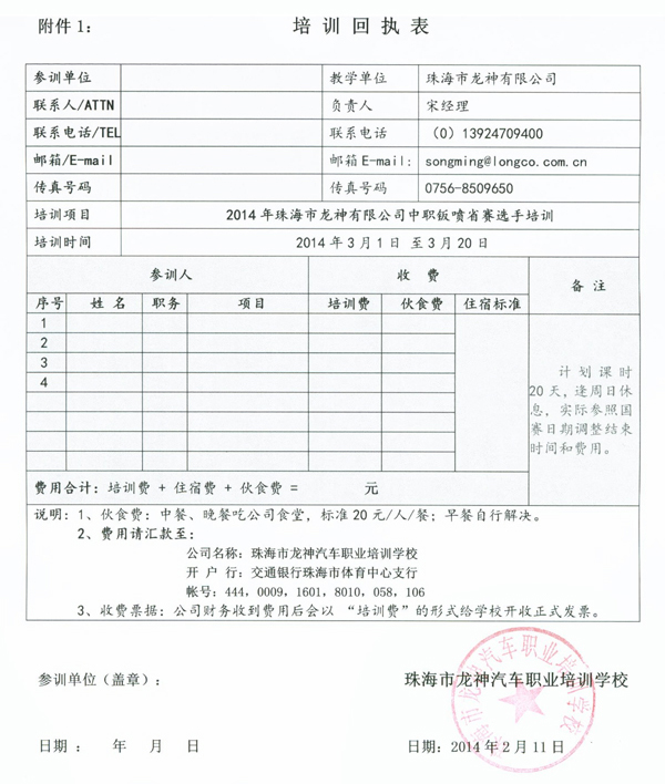 為了響應(yīng)國家“企業(yè)應(yīng)該積極融入和參與職業(yè)教育事業(yè)”的號召,讓部分參賽條件和設(shè)施不足的學(xué)校也能參加技能大賽,促進(jìn)全國中職技能大賽在全國的快速和均衡地發(fā)展,珠海市龍神有限公司憑借自身20多年的汽車鈑噴行業(yè)經(jīng)驗(yàn)和設(shè)備技術(shù)優(yōu)勢,定于2014年3月1日至3月20日在珠海舉辦為期20天的汽車車身修復(fù)與涂裝技能大賽選手培訓(xùn),具體方案如下: