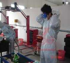 工具設(shè)備:油漆攪拌器、調(diào)漆工作臺(tái)、調(diào)漆稀料、電子稱(chēng)、調(diào)漆棒、調(diào)漆杯、調(diào)漆尺、烘烤箱、測(cè)色燈箱 粘度計(jì)、漆膜測(cè)厚儀、光澤度儀、臉部應(yīng)急沖洗盆、噴槍清洗機(jī) 耗材及勞保:底漆固化劑、中途底漆、色母、面漆固化劑、稀料、一次性紙漏斗、對(duì)色卡、清潔無(wú)紡布 腹膜噴漆防護(hù)服、防漆霧眼鏡、標(biāo)準(zhǔn)雙濾芯面罩、抗稀料清潔手套