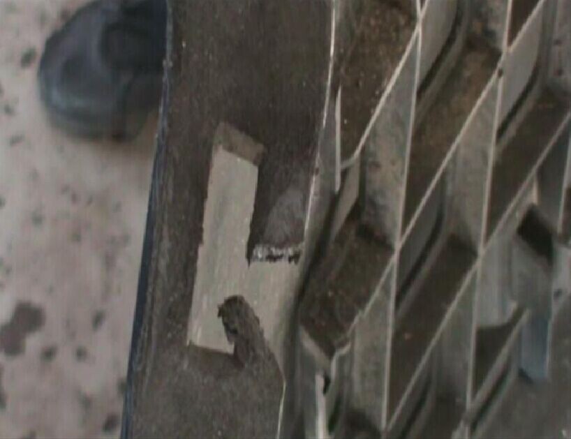 步驟3:用裁剪出來(lái)的無(wú)銹加固網(wǎng)將缺口正反兩面包裹起來(lái),如圖1-3所示。