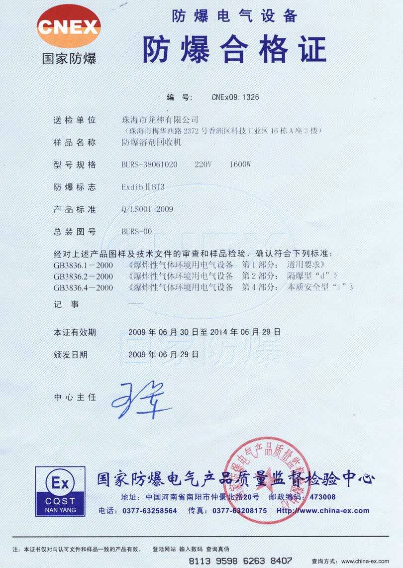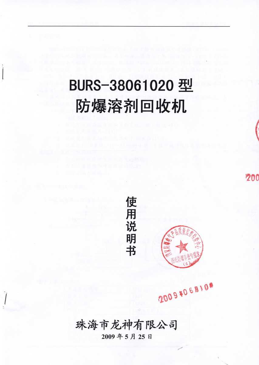 防爆認(rèn)證 防爆溶劑回收機(jī)防爆合格證 BURS系列防爆溶劑回收機(jī)技術(shù)條件 BURS-38061020型防爆溶劑回收機(jī) 使用說(shuō)明書 BURS-38061020型防爆溶劑回收機(jī) 圖紙資料 (以上圖片均可點(diǎn)擊放大) 2012-11-27 34896