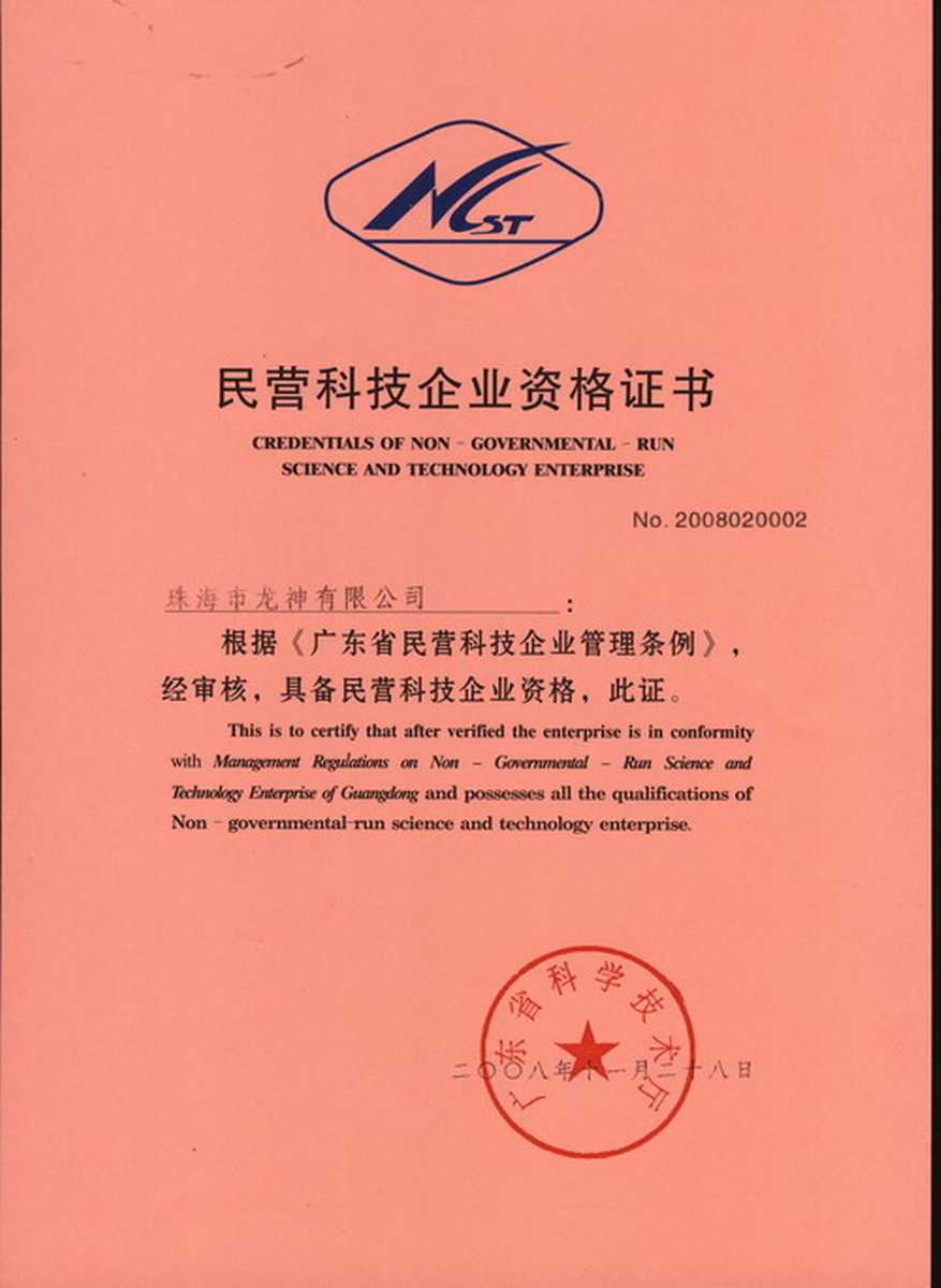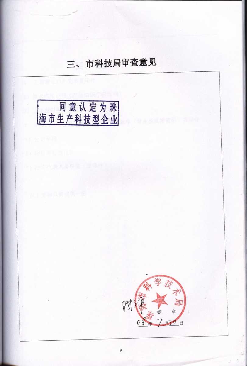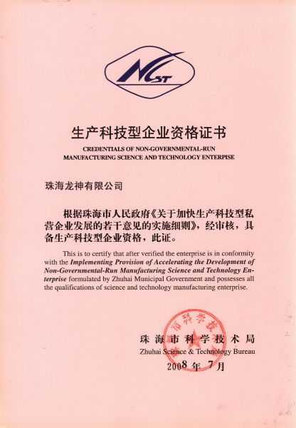 資格證書 一、ISO9001:2008質(zhì)量管理體系認(rèn)證ISO9001:2008質(zhì)量管理體系認(rèn)證證書 二、廣東省民營科技企業(yè)資格證書民營科技企業(yè)資格證書 廣東省民營科技企業(yè) 三、珠海市生產(chǎn)科技企業(yè)證書生產(chǎn)科技型企業(yè) 珠海市生產(chǎn)科技型企業(yè) 認(rèn)定證書 生產(chǎn)科技型企業(yè)資格證書(以上圖片均可點擊放大) 2012-11-27 37307