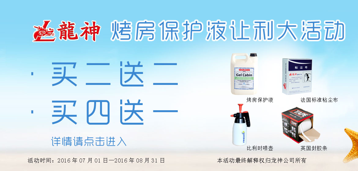 意大利烤房保護(hù)液讓利大活動(dòng) 2016-06-24 11051 “熱夏、清涼、給力”意大利烤房保護(hù)液讓利大活動(dòng)。買(mǎi)2罐,送法國(guó)“GekateX”標(biāo)準(zhǔn)粘塵布2盒;買(mǎi)4罐,送英國(guó)封膠條(1卷)或比利時(shí)噴壺(1個(gè))。