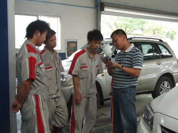 會(huì)后龍神高級(jí)技師曾慶渡到南昌富源豐田現(xiàn)場(chǎng)實(shí)操無(wú)塵干磨系統(tǒng)